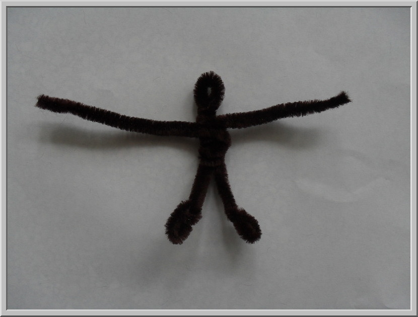 Knip een stuk van 24 cm chenilledraad af. Vouw dubbel en draai er aan de bovenkant een hoofdje op.